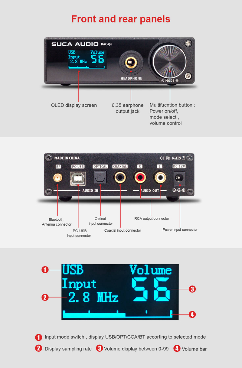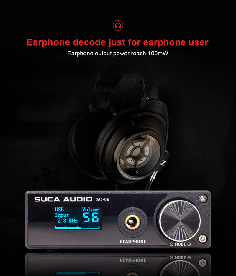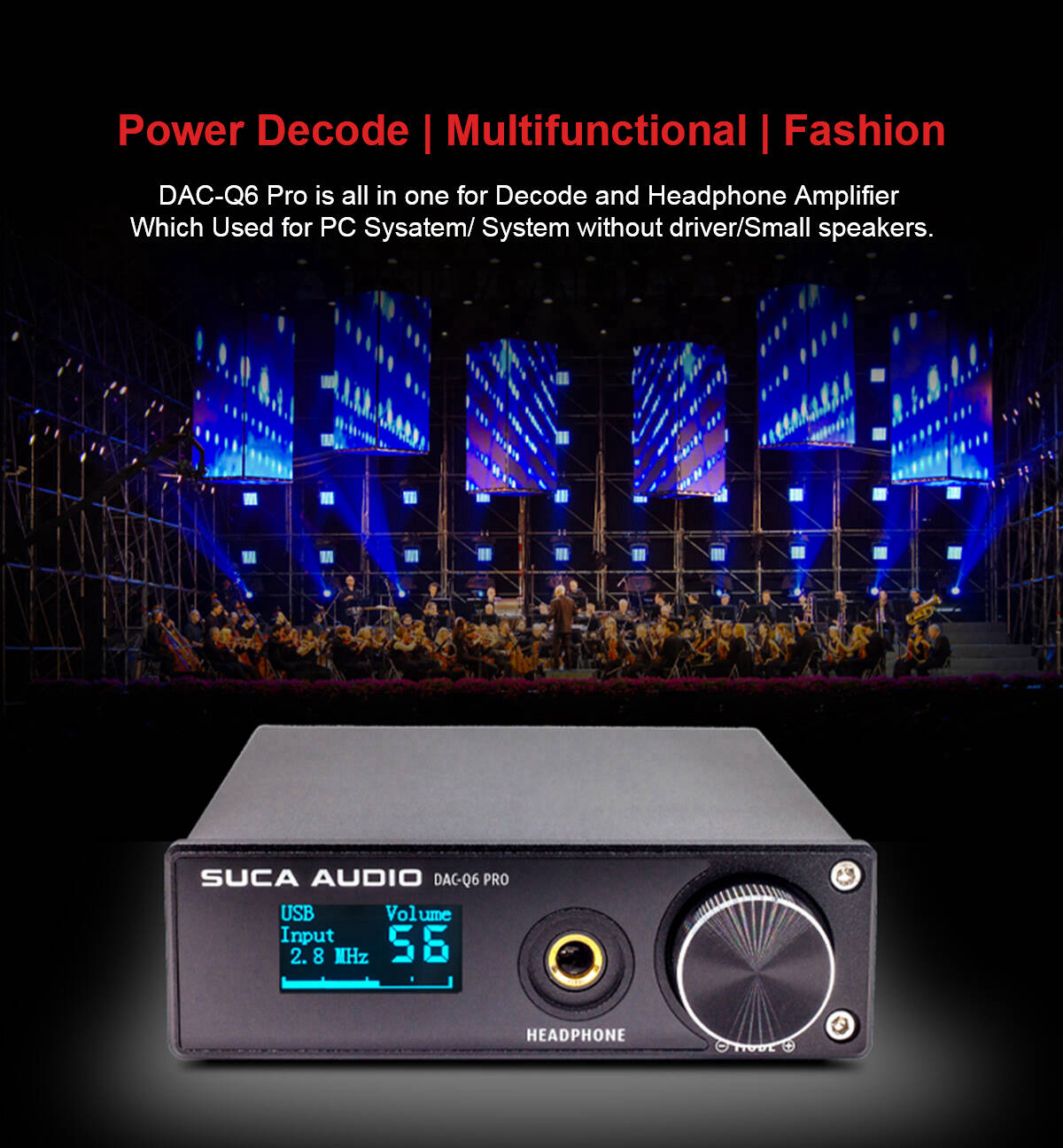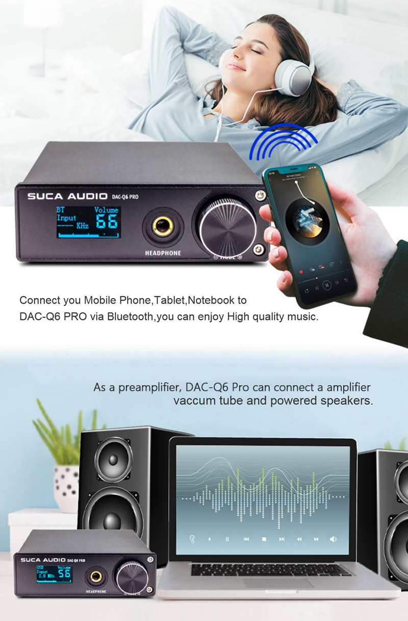 SUCA AUDIO DAC-Q6 PRO Black Hifi Headphone Amp Bluetooth 5.0 DAC Preamplifier DSD512 Power Adapter
