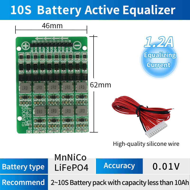 SUNKKO BAL-10S-1A Active Battery Balancer 2-10S Battery Equalizer for Ternary Iron Lithium Battery