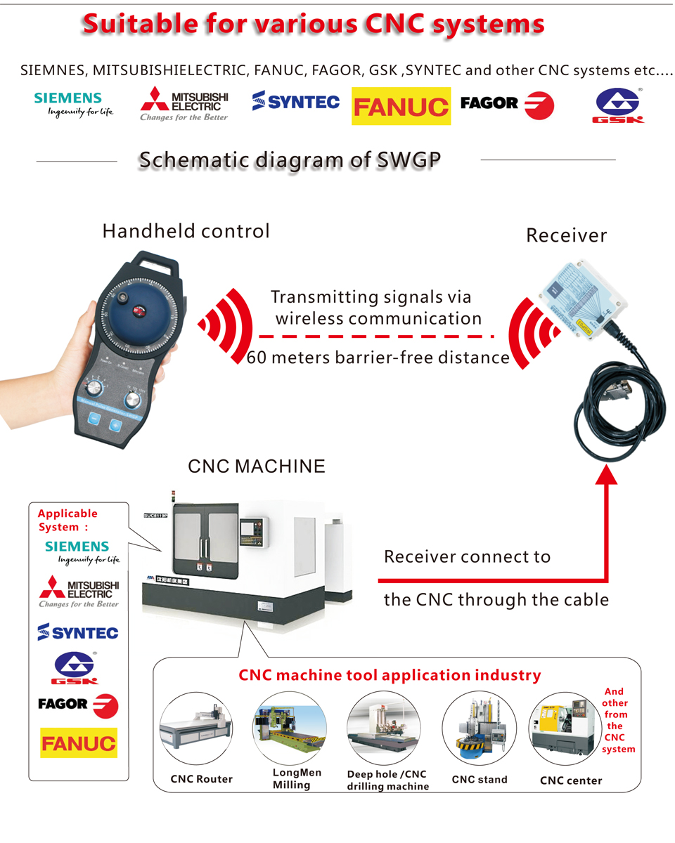 - It is mainly for systems including FANAC, SIEMENS and MITSUBISHI. The parameters of our handwheel pendant varies to fit for different systems.