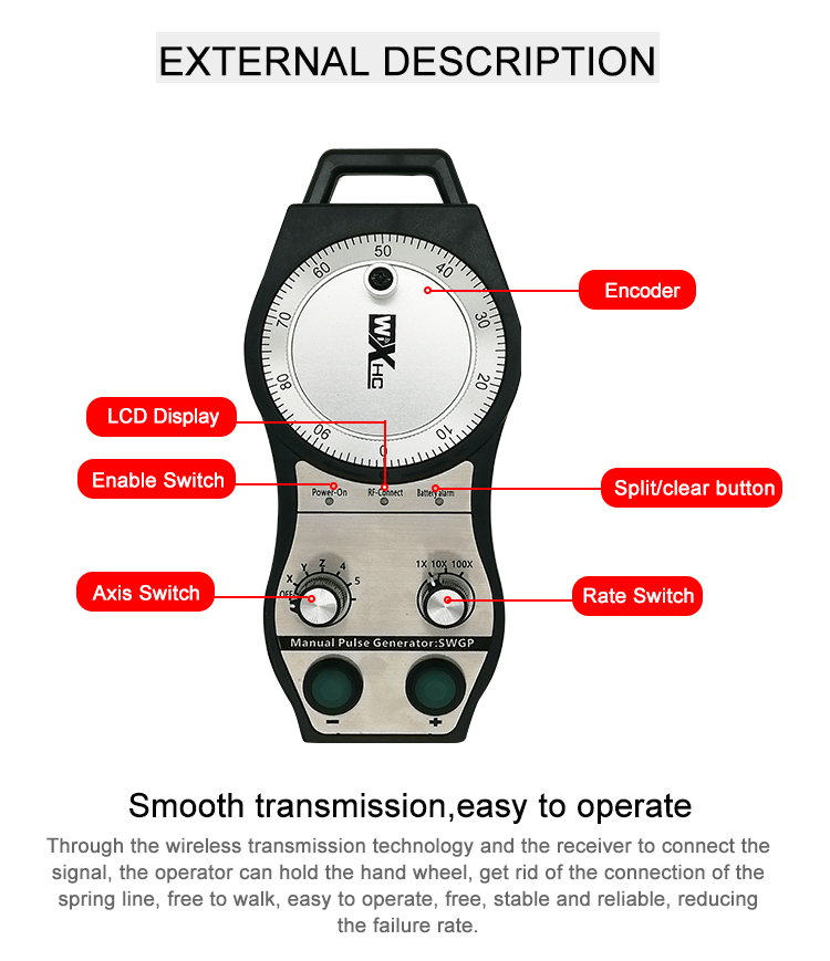 - Anti-interference Design: Built for stable and reliable performance, enabling application of 32 sets of wireless handwheel in the same room, without affecting each other