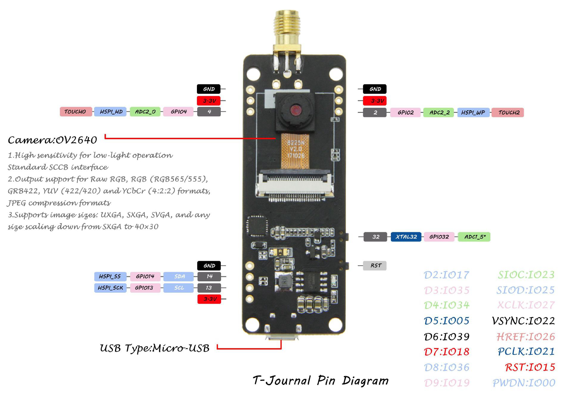 T-Journal Normal Lens ESP32 Camera Module Development Board OV2640 Camera Wifi Antenna 0.91" OLED