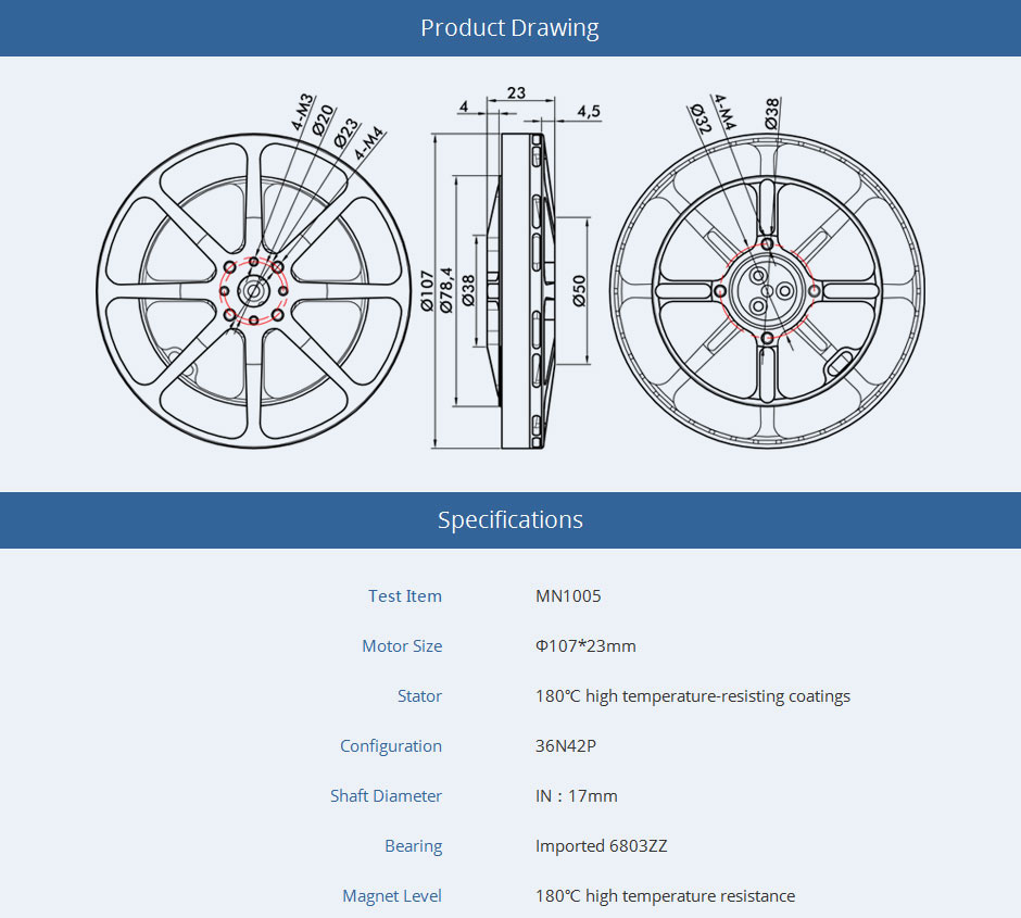 T-Motor Brushless Drone Motor Maximum Thrust 9.3KG+ MN1005 90KV Antigravity Brushless Motor