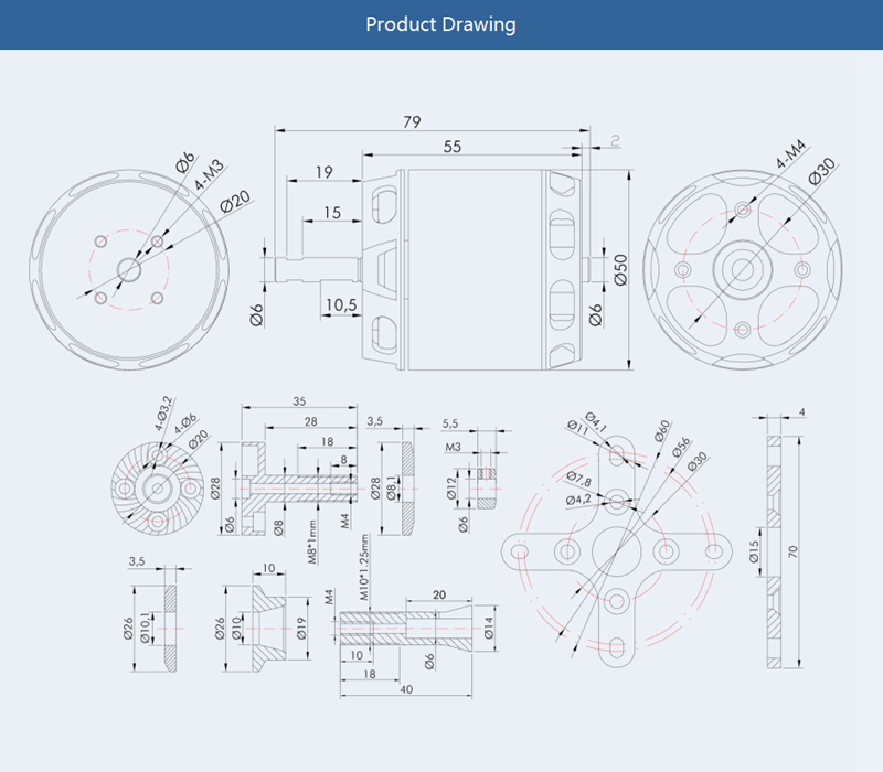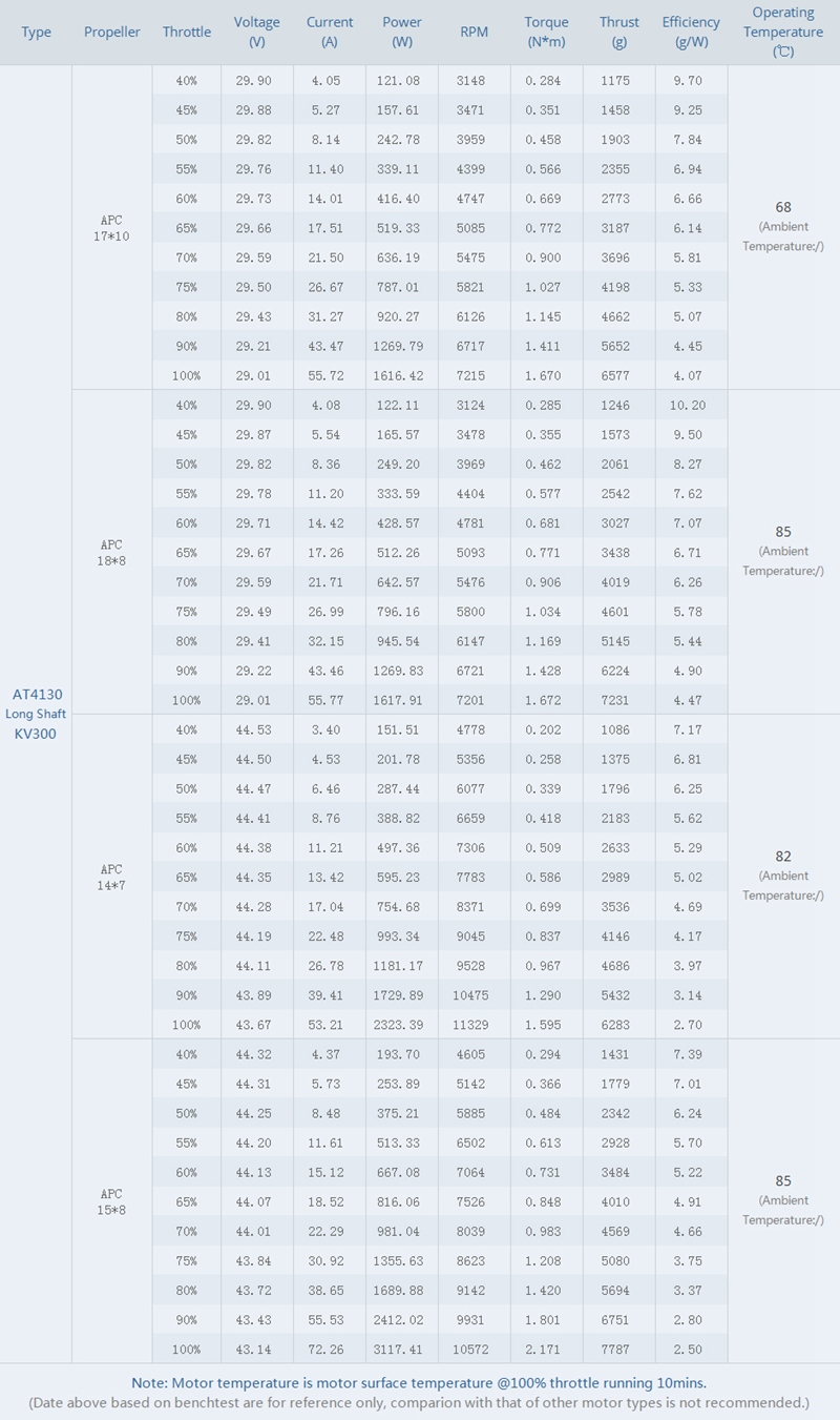 T-Motor Brushless Motor AT4130 Long Shaft Motor 300KV Thrust 7.8KG 6-12S For UAV Drone Fixed Wing