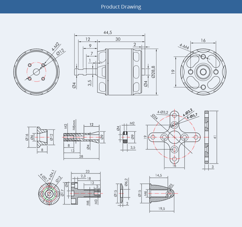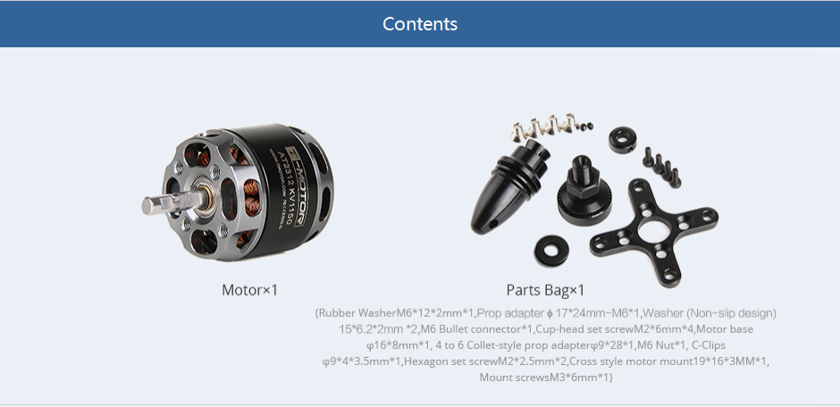 T-Motor Brushless Motor Thrust 1.3KG 2-4S For Fixed Wing RC Drone AT2312 Long Shaft 1150KV/1400KV