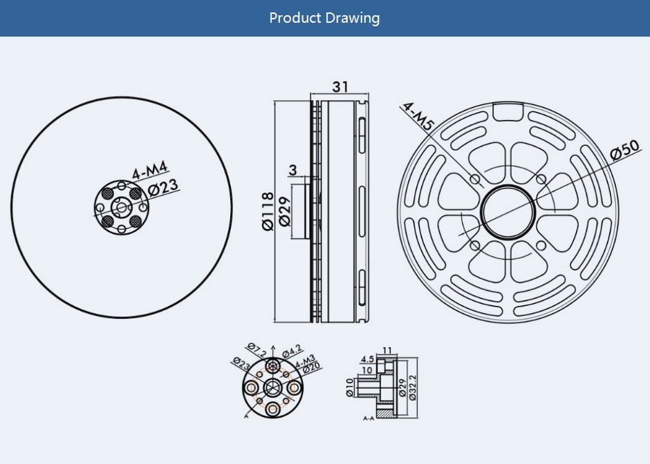 T-Motor MN1010 KV90 Outrunner Brushless Motor 6-12S Navigator Series For Multirotor RC Drones