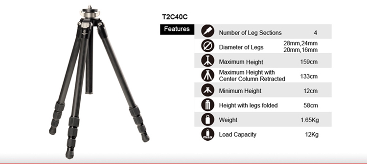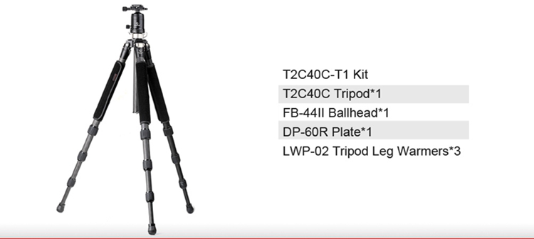 T2C40C-T1 Kit Carbon Fiber Tripod Folding Tripod Camera Tripod Stand with Ball Head Load 12KG