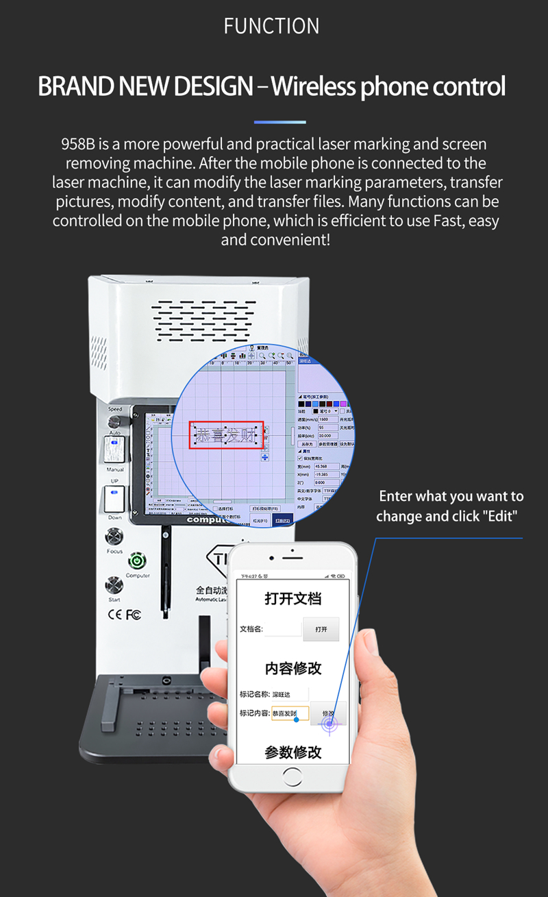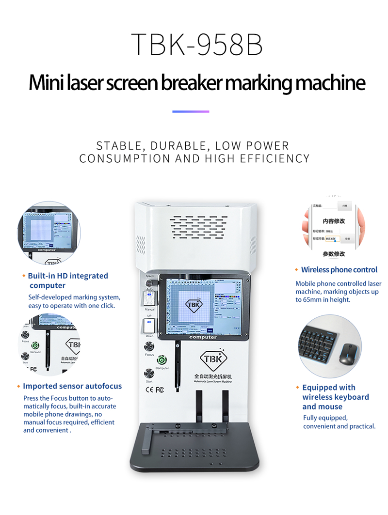 TBK958B Automatic Laser Marking Machine Back Glass Separator For iPhone Mobile Phones