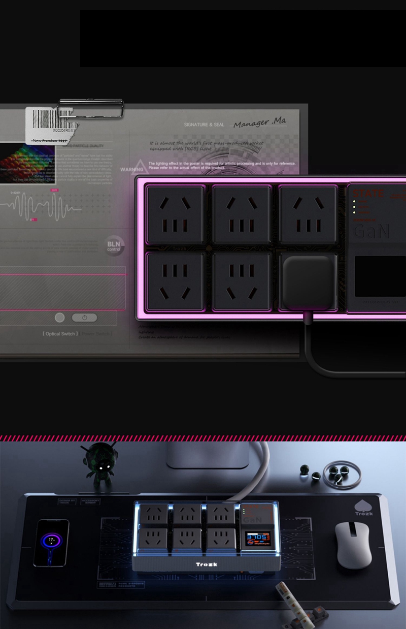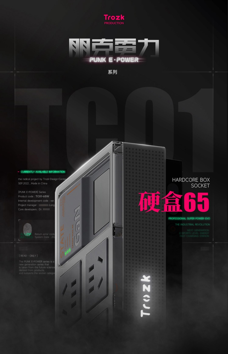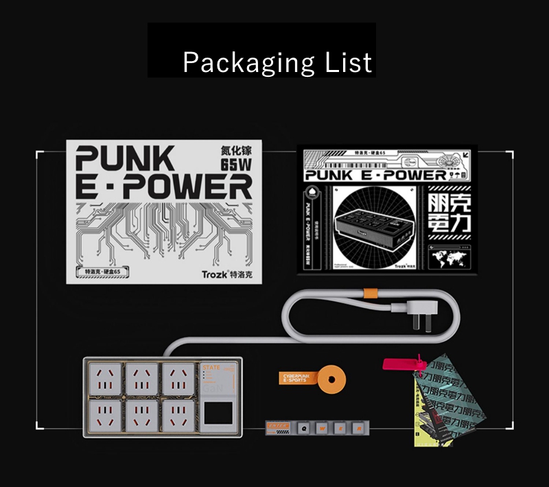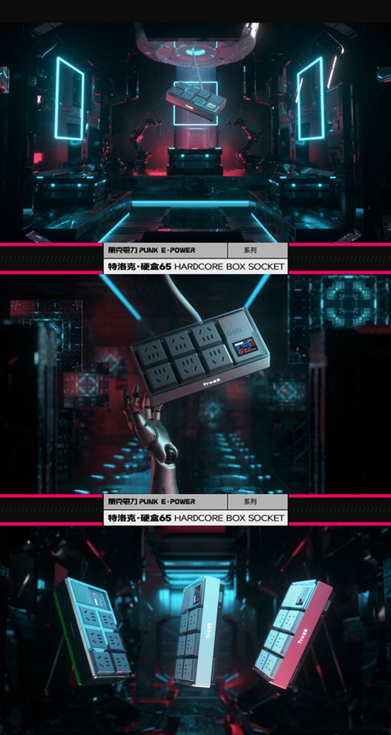 TC01-65W E-Sport White Hardcore Box Power Socket Multi-Functional Punk E-power Socket for Trozk with Anti-Surge Function