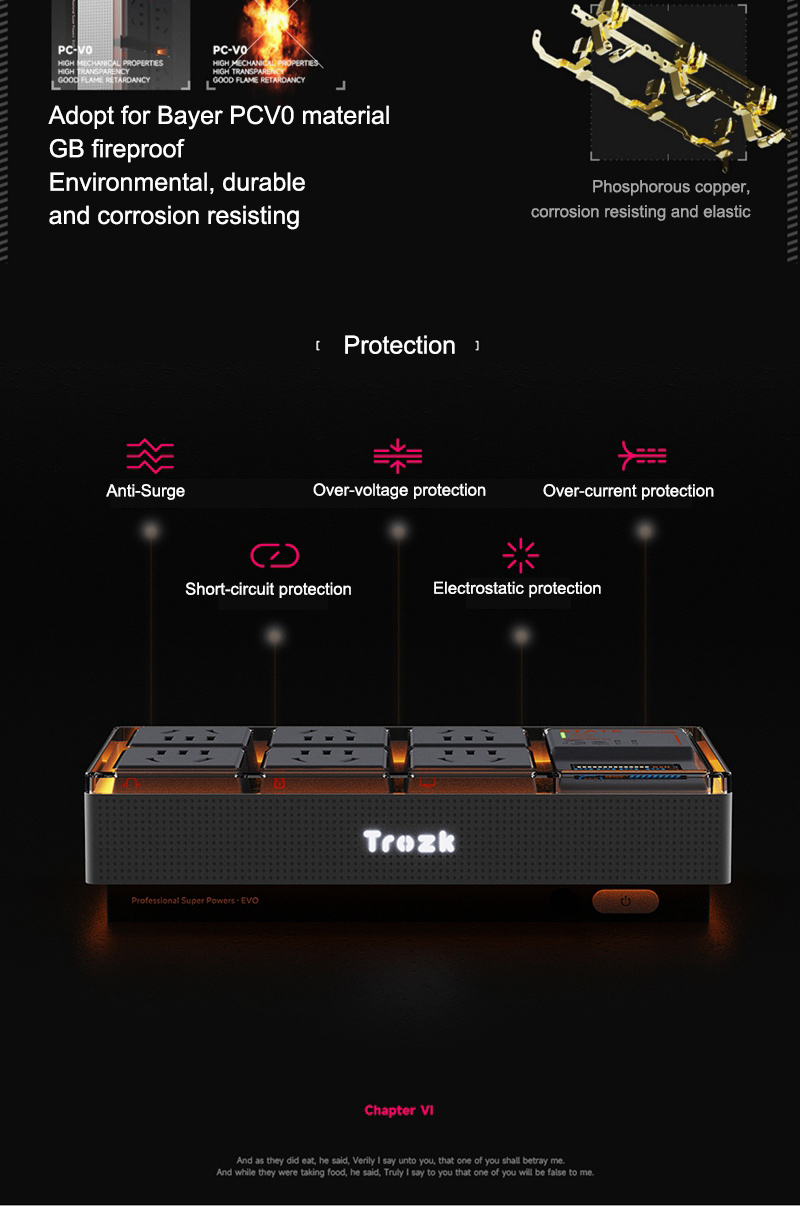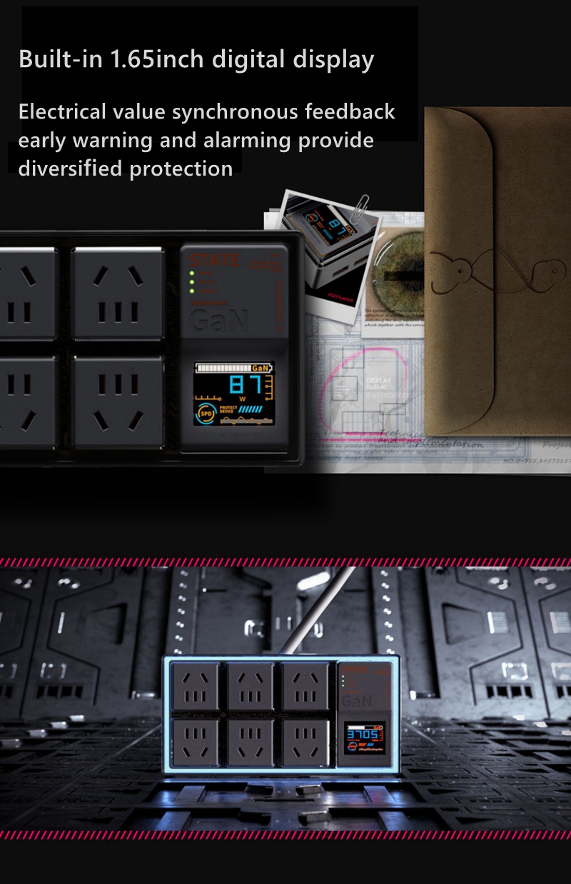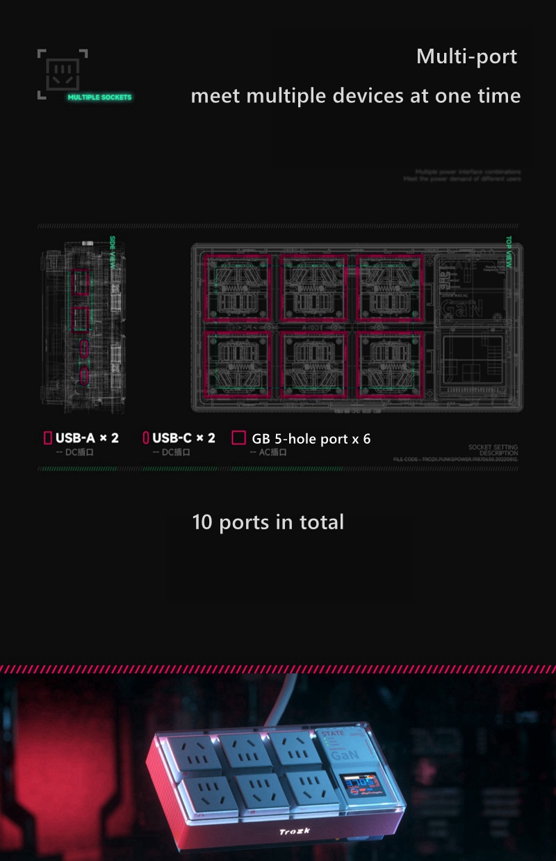 TC01-65W E-Sport White Hardcore Box Power Socket Multi-Functional Punk E-power Socket for Trozk with Anti-Surge Function