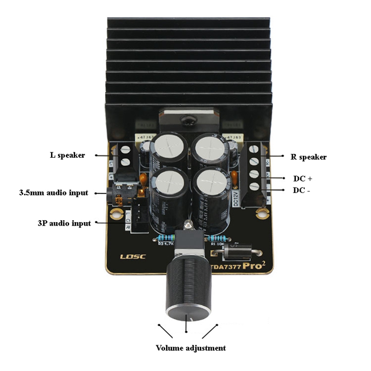 - Output Power: For 4-8Ω speaker, maximum 2*35W stereo output (18V 4Ω)