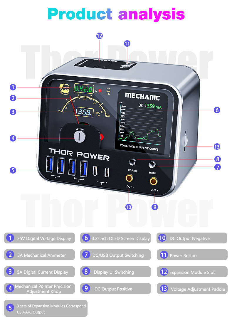 Thor Power Intelligent Digital Diagnostic Programming DC Regulated Power Supply with Infinite Expansion Ports