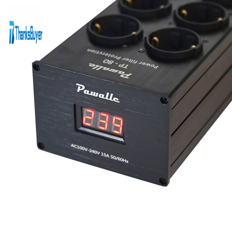 TP- 80 3000W 15A LED Display Aluminum Audio Noise AC Power Filter Amplifier PC Power Conditioner Purifier Surge Protection-Silver