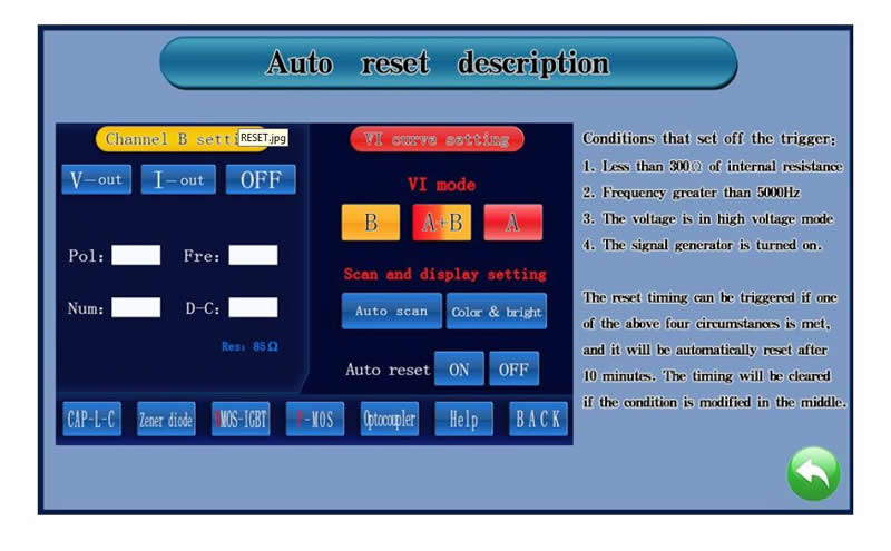 4. High voltage scanning mode, can directly read the value of Zener diode.