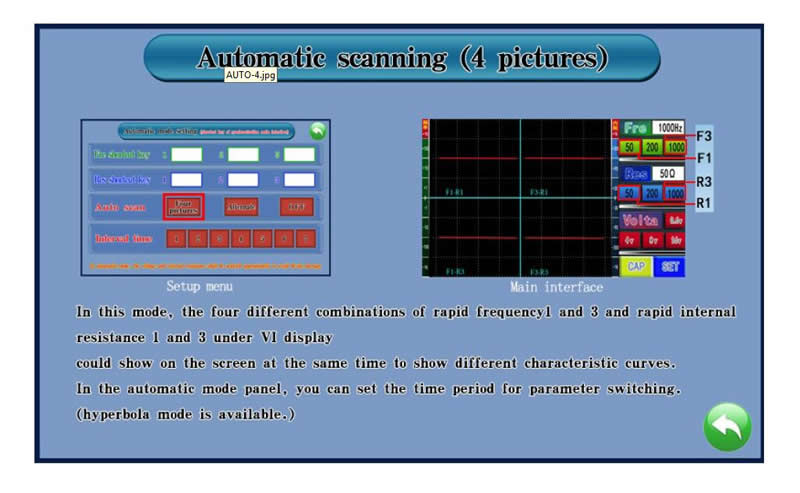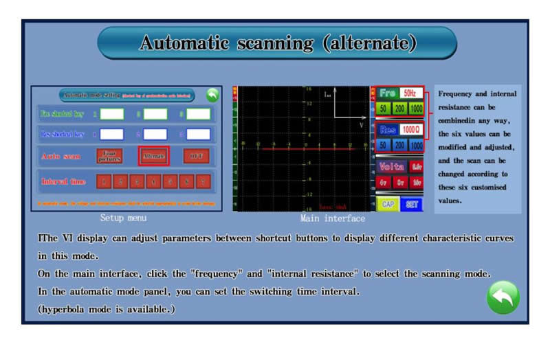 3. The automatic scanning function is added, which can automatically change the frequency and internal resistance, quickly and accurately determine the characteristic curve of the detection point, and improve the detection efficiency.