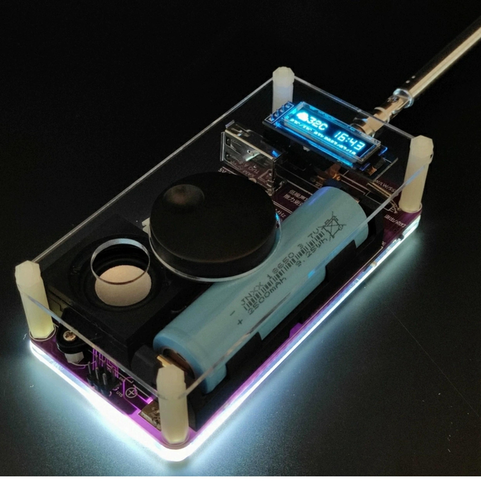 - The circuit has strong anti-interference ability, using a high fidelity cavity speaker with rubber edges, with a sound power of 2W+, transparent and pleasant sound quality, and the external amplifier can be manually turned off. An independent low noise ear amplifier circuit is designed to compensate for the insufficient thrust of the Radio chip, making it more suitable for headphones and audio listening.