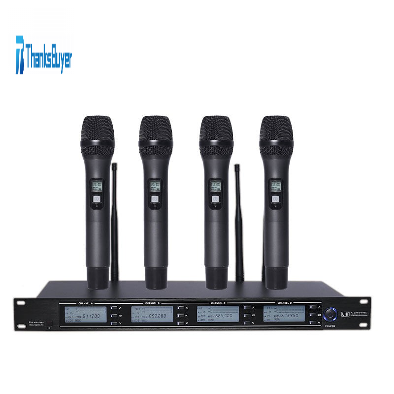 TZT U-84 Professional Wireless Microphone System Cordless Microphone System w/ 4 Black Handheld Mics