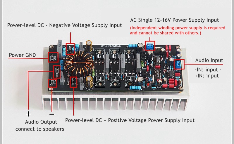 - Power supply voltage: power-level DC dual 40 - 90V (you need to add filtering rectifier board by yourself)