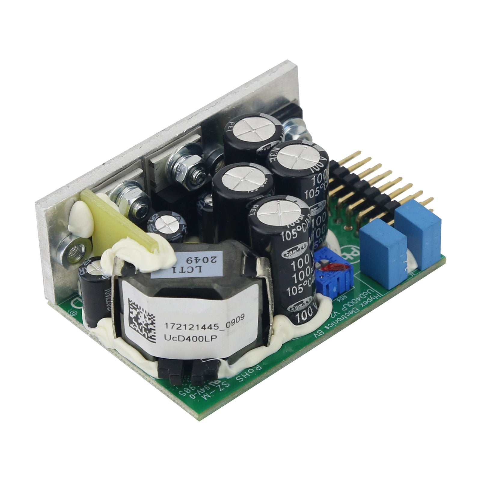 - The UCD400LP (Low Profile version) amplifier module is a self-contained high performance class D amplifier intended for a wide range of audio applications, ranging from Public Address systems to ultrahigh-fidelity replay systems for studio and home use. Chief distinguishing features are flat frequency response irrespective of load impedance, nearly frequency-independent distortion behaviour and very low radiated and conducted EMI. Control is based on a phase-shift controlled self-oscillating loop taking feedback only at the speaker output.