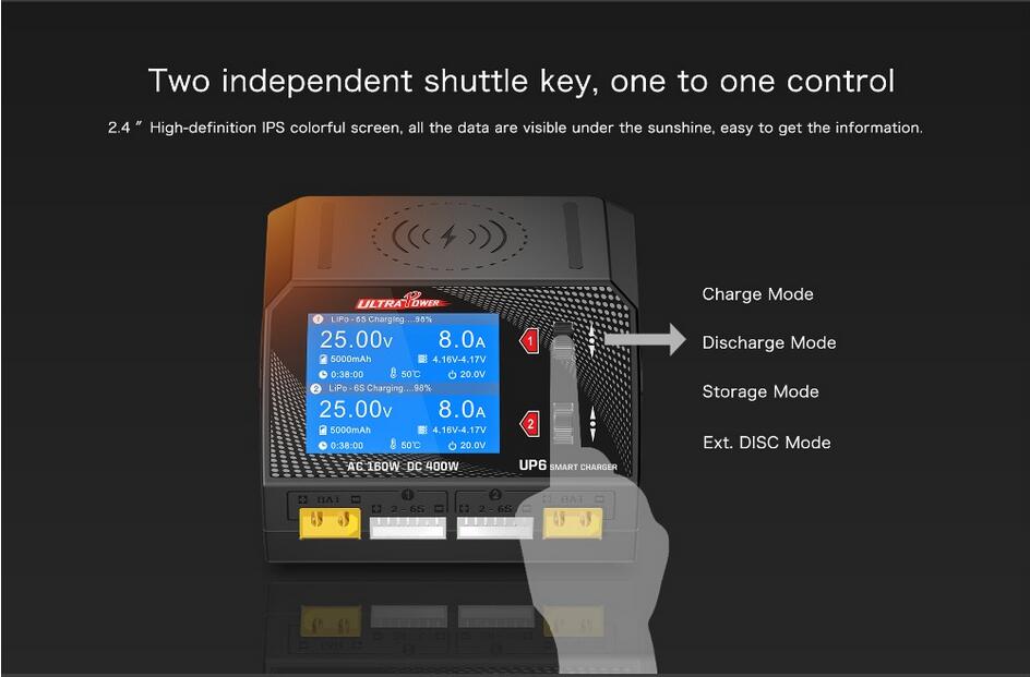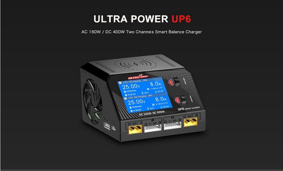 UP6 Dual Channel Battery Balance Charger Smart Discharger 400W AC DC for RC Model Lithium Battery