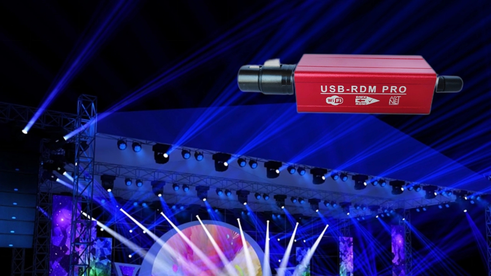 USB-RDM PRO controller receives signals from a PC via a USB. It can control 512 DMX channels and is compatible with third-party software with ARTNET output. The controller supports for DMXControl/ FreeStyler/Tiger Touch consoles/MagicQ/MA2/Madrix/QLC.