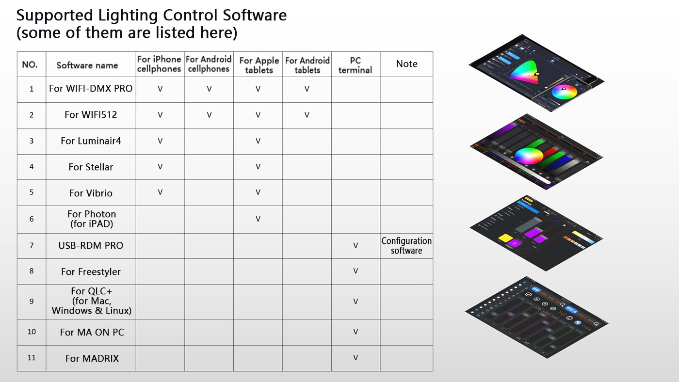 - Configuration software: For USB-RDM PRO, WIFI-RDM and WIFI-DMX PRO