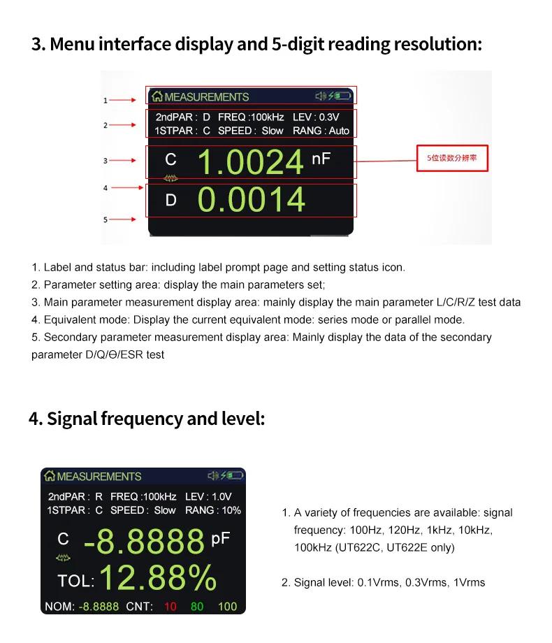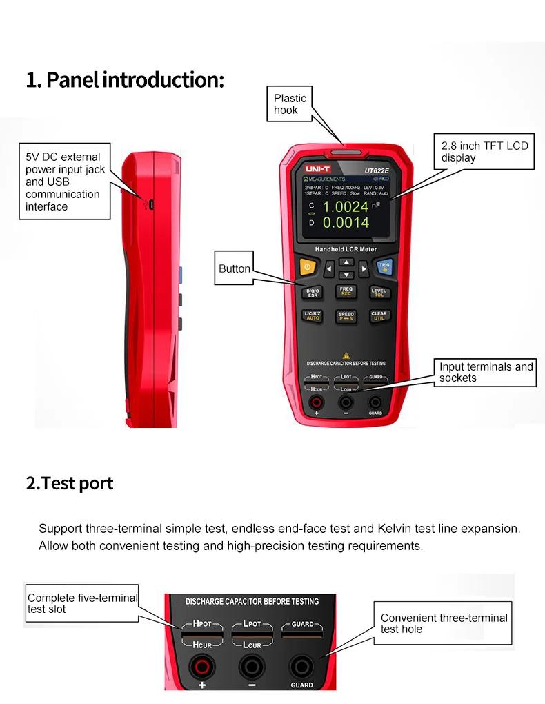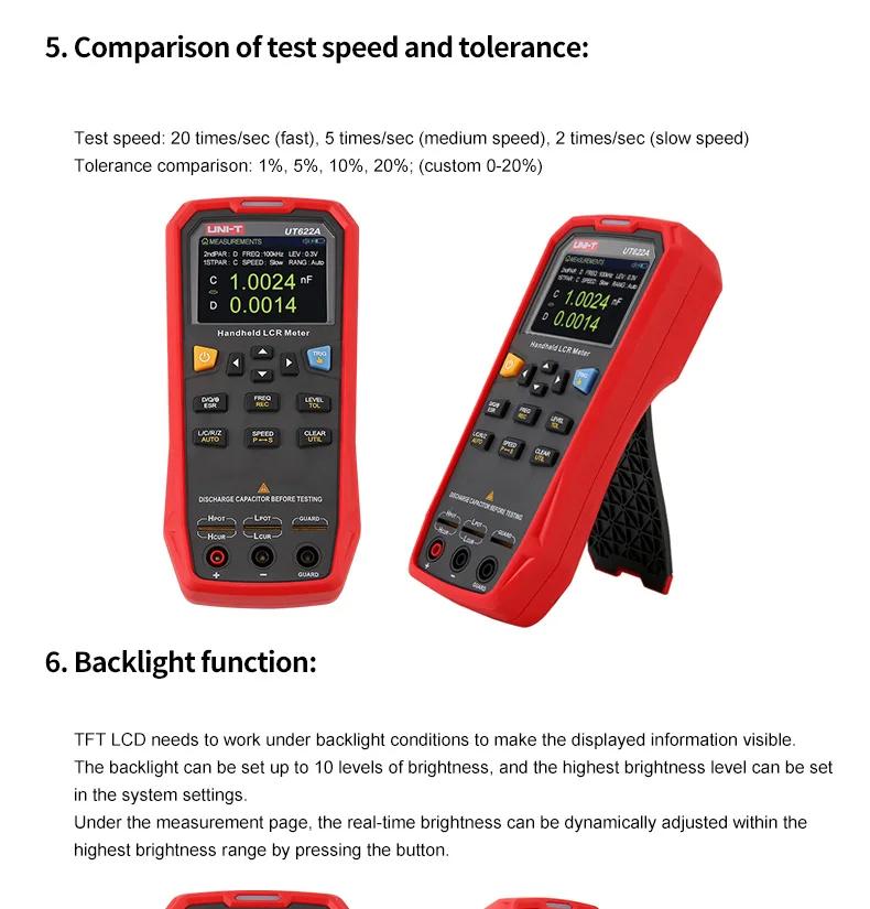 UT622A 10KHz Handheld High Precision LCR Meter Digital Resistance/Inductance/Capacitor Tester with 2.8-inch TFT LCD