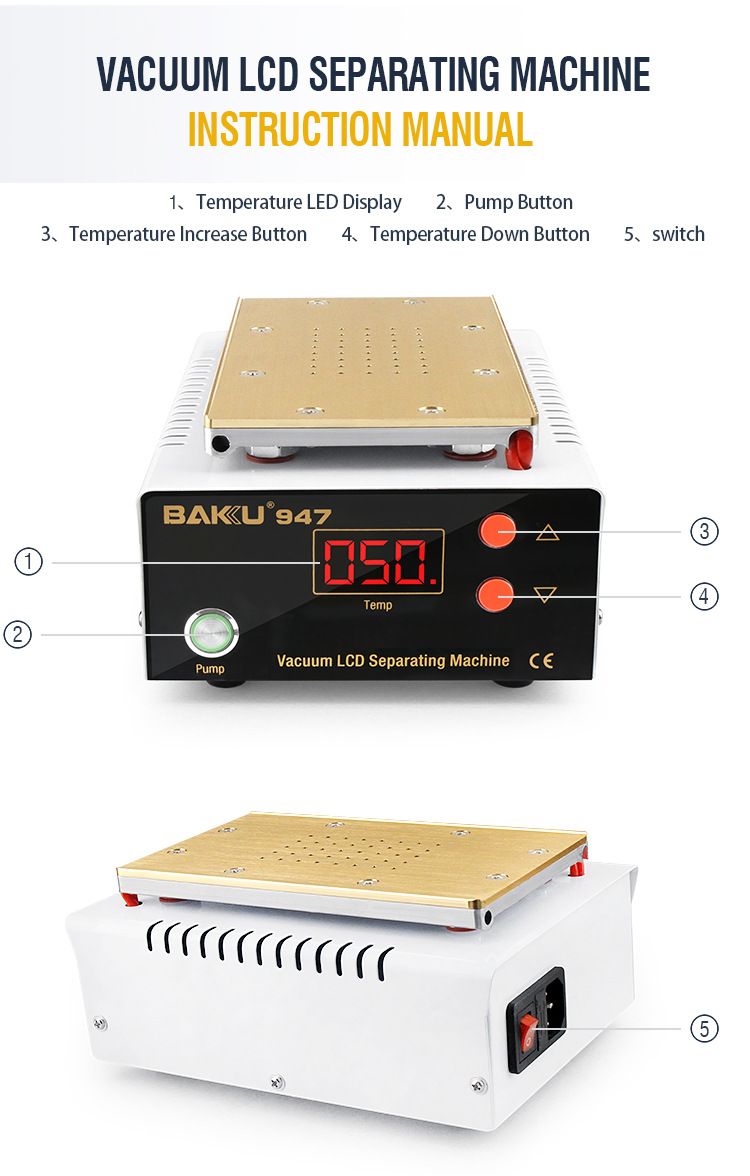 Vacuum LCD Screen Separator Machine Screen Repair Machine for Smartphone Screen BK-947