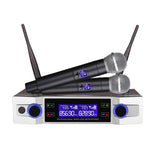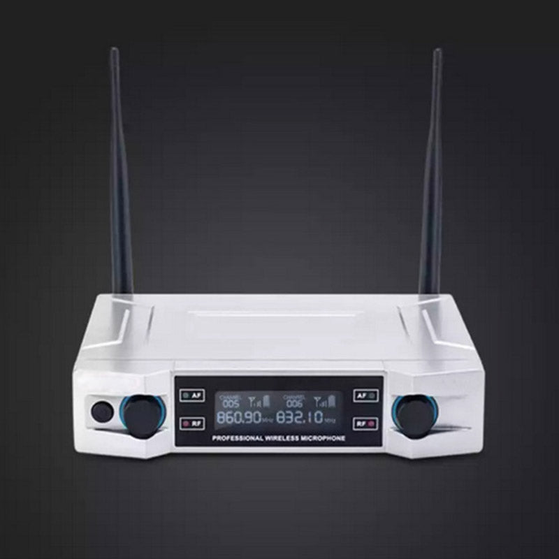 VHF Wireless Microphone System Dual Channel Receiver + 2 Cardioid Microphone for Home KTV (Silver)
