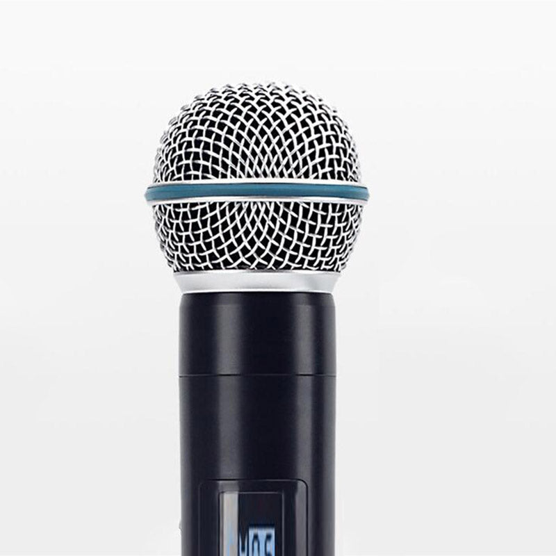 2. Wireless system one for two, equipped with professional vocal microphone which with integrated diaphragm design, good acoustics and constant frequency.
