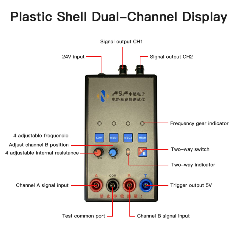 - Analog oscilloscope does not need to adjust the time base; digital oscilloscope time base is adjusted to 1-5ms