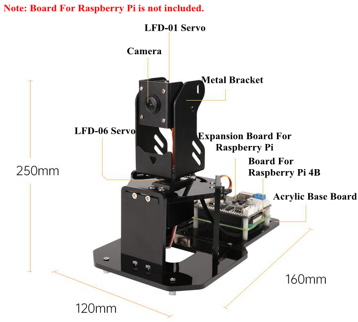 VisionPi Camera Gimbal Visual PTZ 2DOF Camera Unassembled without Main Board For Raspberry Pi 4B SD Card
