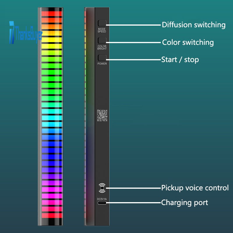 Voice-Activated Music Spectrum Display Rhythm Light DC 5V 1A with Tripod Stand Supports APP Control