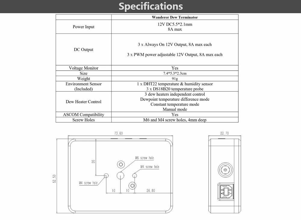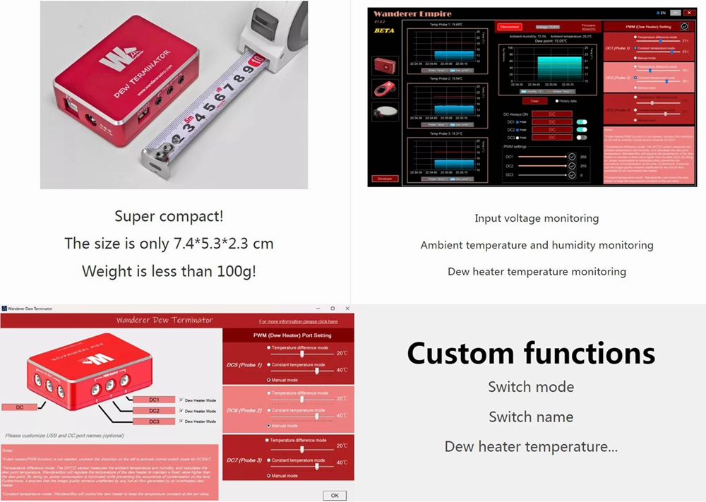 Wanderer Dew Terminator Astronomical Dew Heater 3-Channel DC Controller Remote Power Management Box