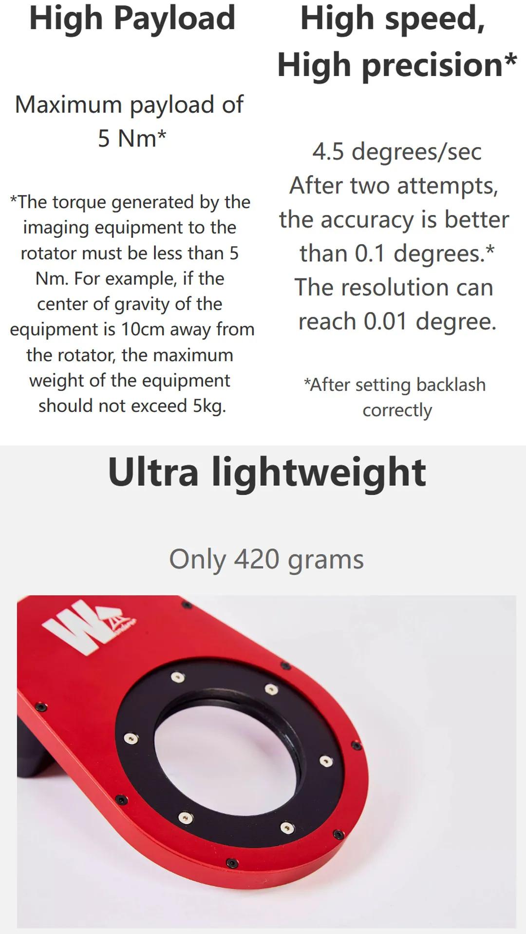 - Payload: the torque generated by the imaging equipment to the rotator must be less than 5Nm