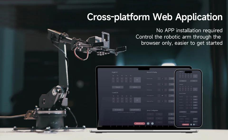 - Support multiple host computers: the robotic arm can be connected to host computers for Raspberry Pi, for Jetson Nano, PC and others via USB cable