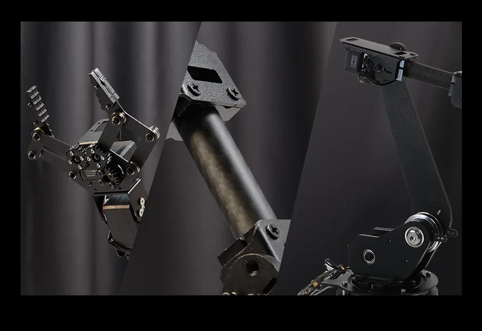 - Stainless steel gripper - carbon fiber arm - aluminum body