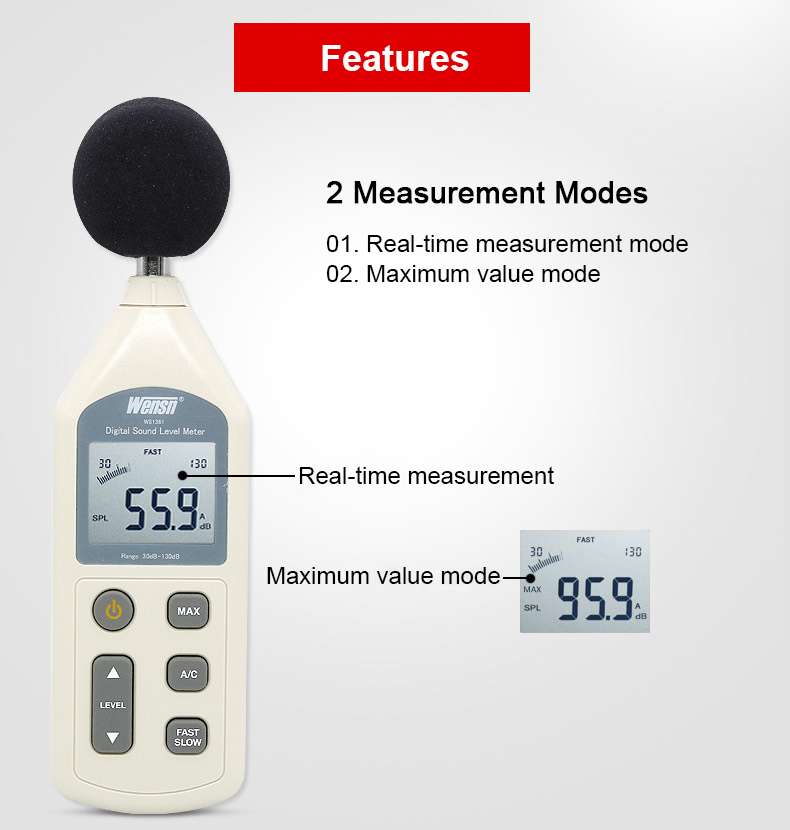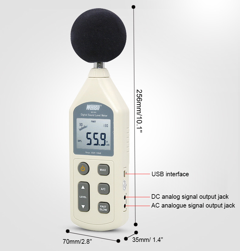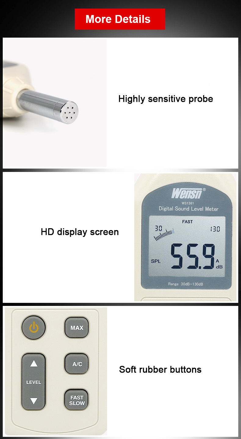 - The measurement range is 30-130dB. The measurement accuracy is ±1.5dB