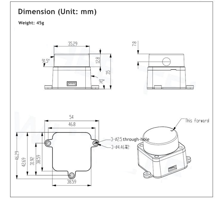- Ranging distance: 0.03 - 0.5m, ±10mm