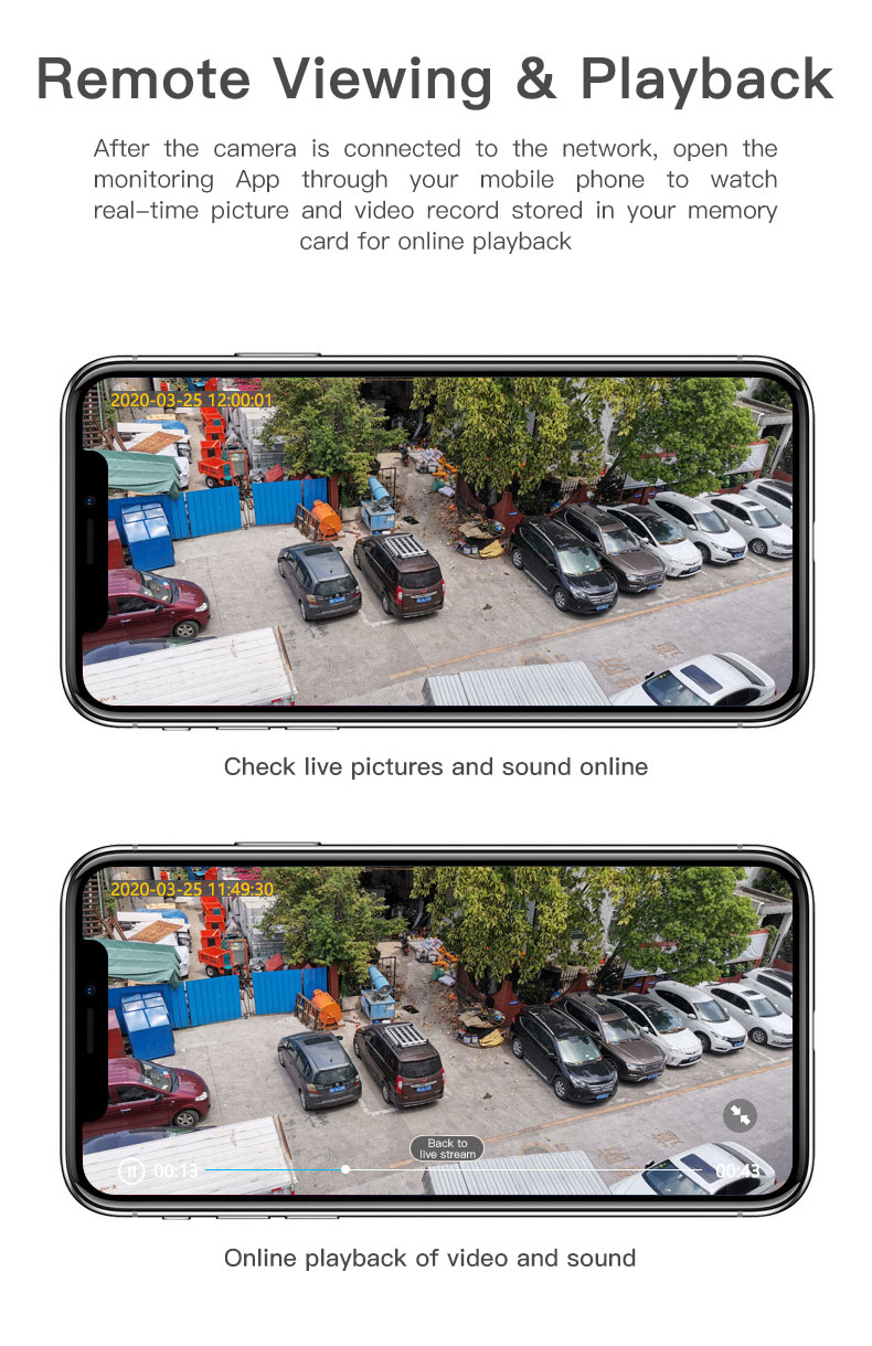 - Storage: Support TF Card 4GB-64GB and cloud storage