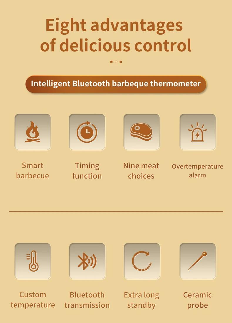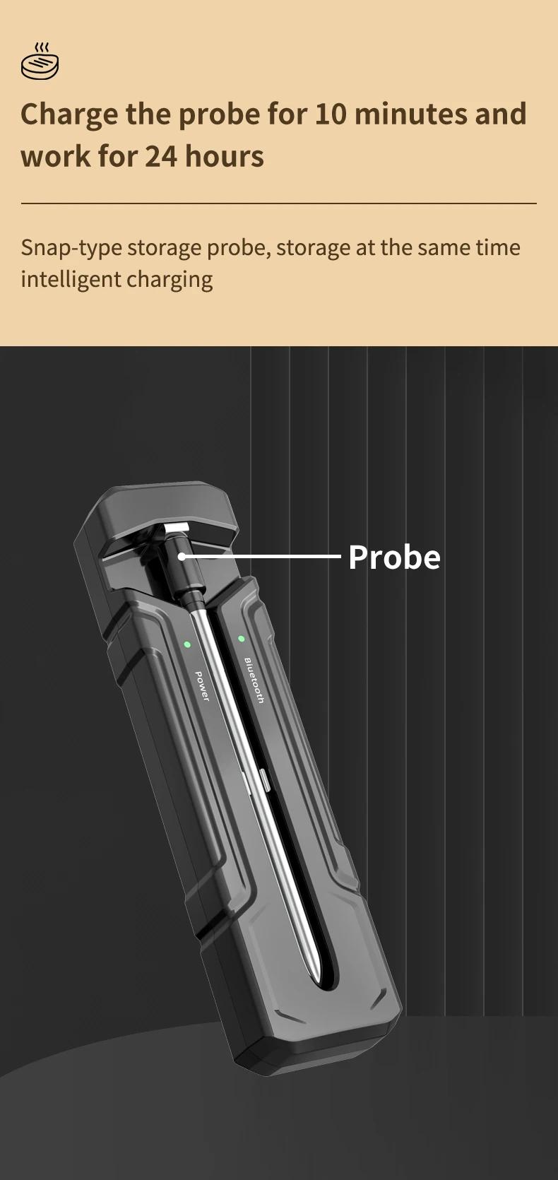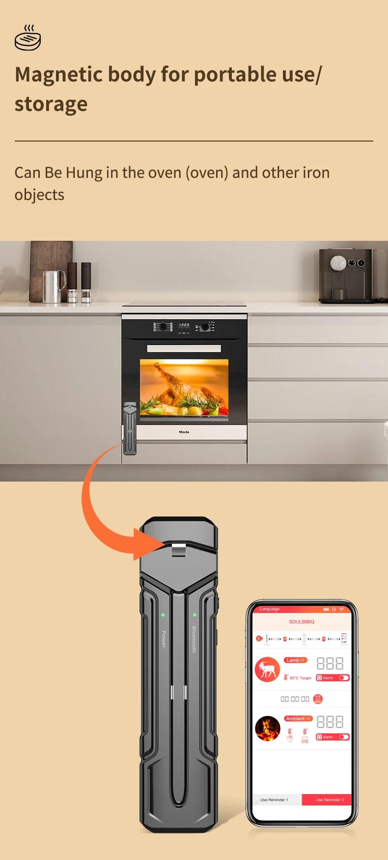 Wireless Intelligent Bluetooth Barbecue Thermometer Support Magnetic Suction for High Temperature Ovens and Stoves