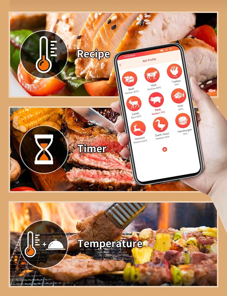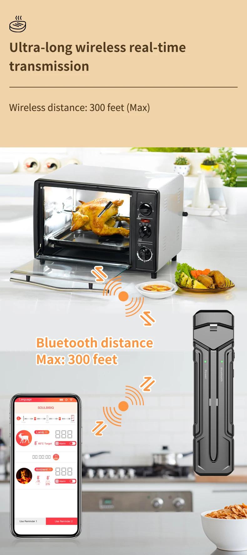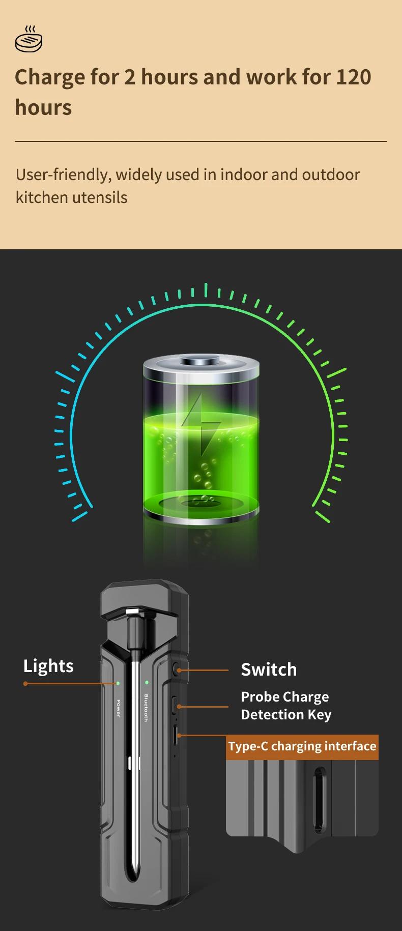 Wireless Intelligent Bluetooth Barbecue Thermometer Support Magnetic Suction for High Temperature Ovens and Stoves