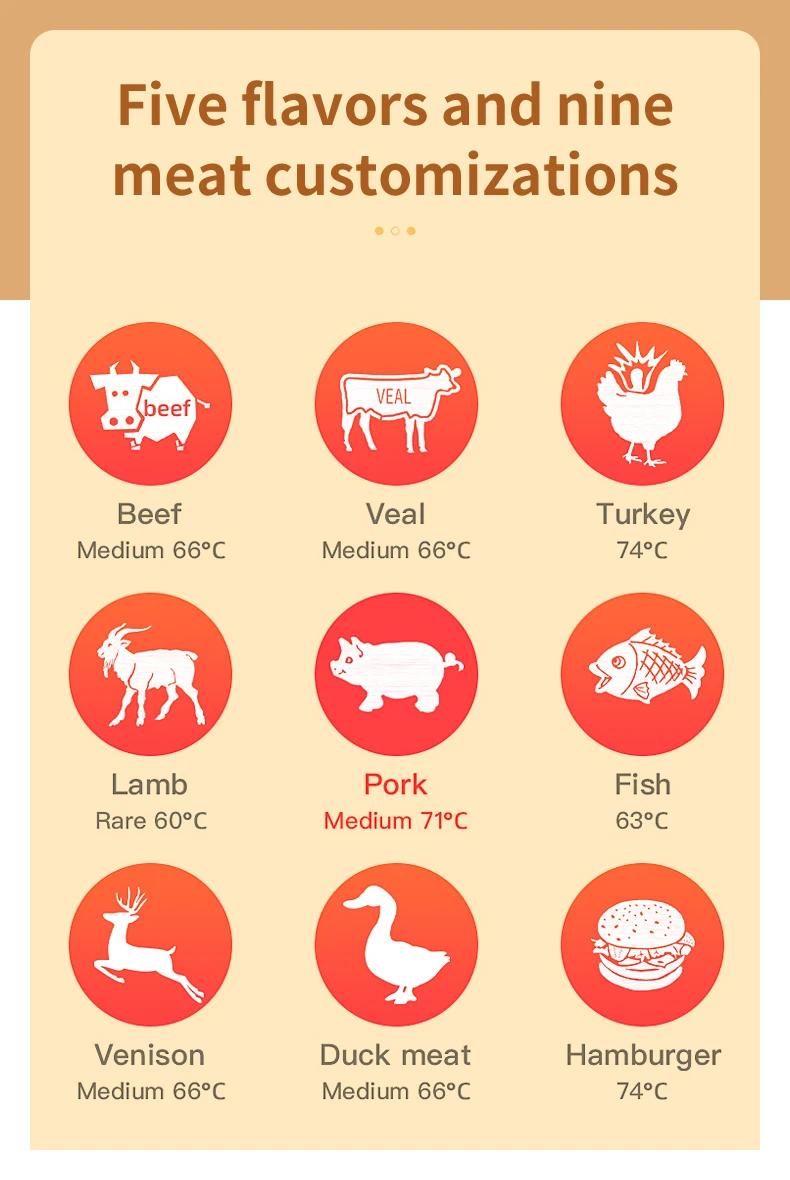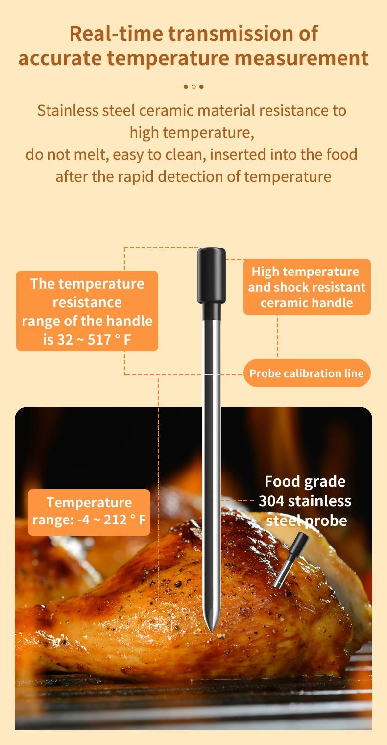 - Accurate temperature measurement and real-time transmission: Stainless steel ceramic material is resistant to high temperature, does not melt, and is easy to clean. It can quickly detect temperature after being inserted into food.