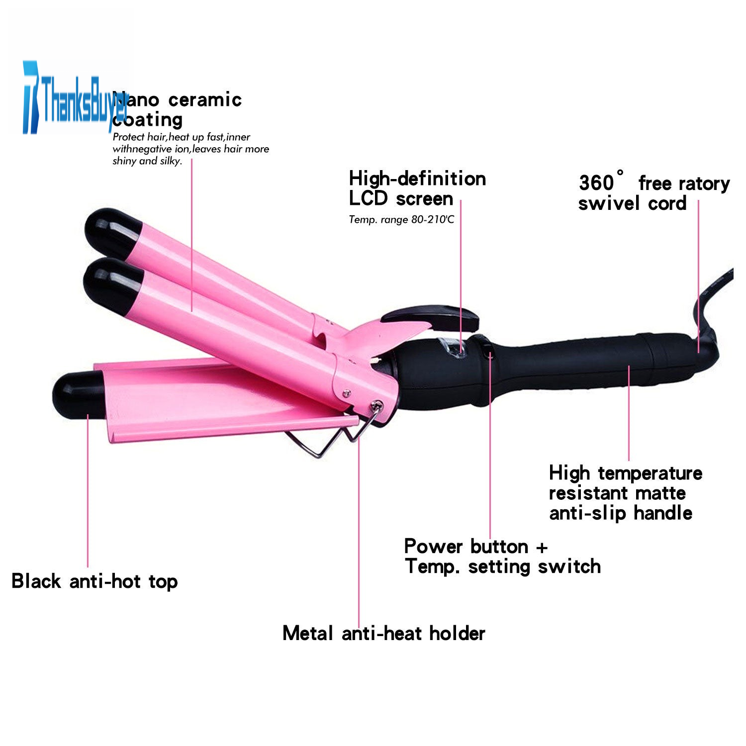 WT-199 Big Curls Curling Wand Three-Rod Curling Iron Quick Hair Curler Tool Low Power Consumption