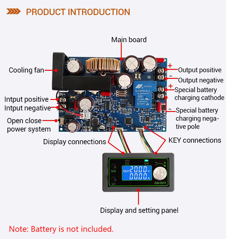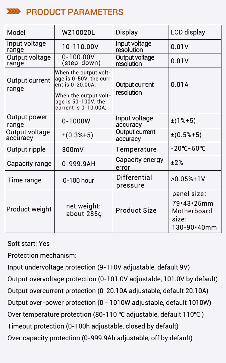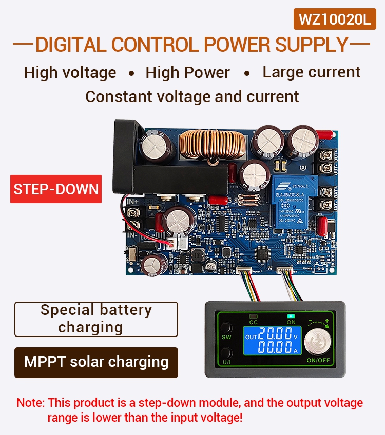 WZ10020 1000W Step Down Module DC Buck Converter Output 0-100V MPPT Solar Panel Charging Power Supply