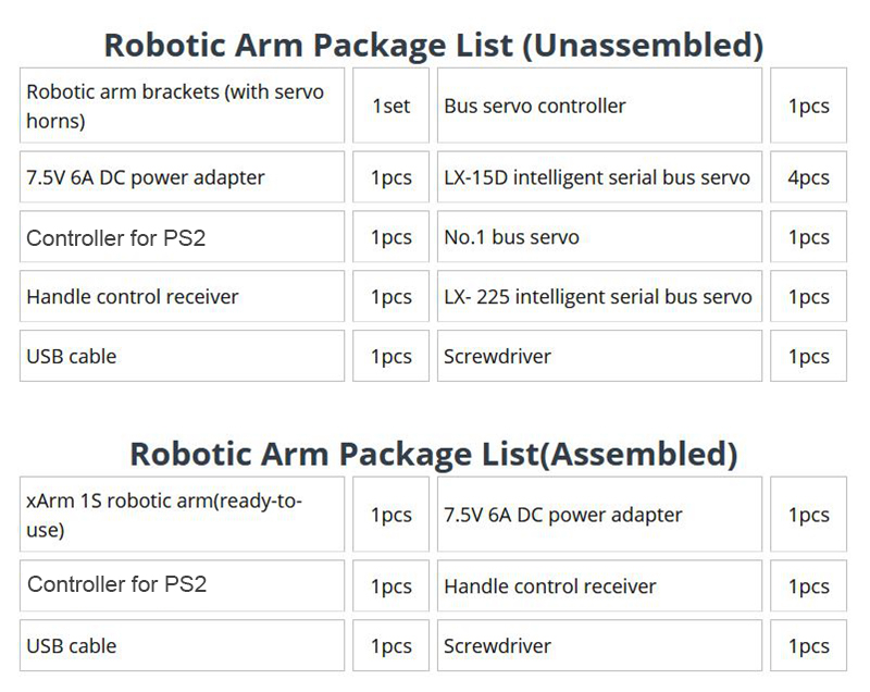 - Servo: single shaft/LX-15D/LX-225 intelligent bus servo