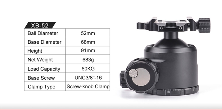 XB-52 Low Profile Tripod Ball Head Panoramic Tripod Head Load 60KG with Screw-Knob Clamp DDC-60X