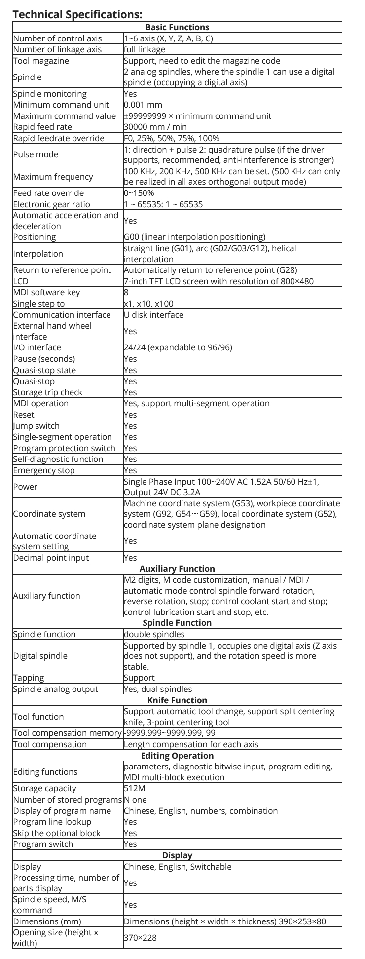 - 40 kinds of G-command: support drilling cycle and tapping cycle.