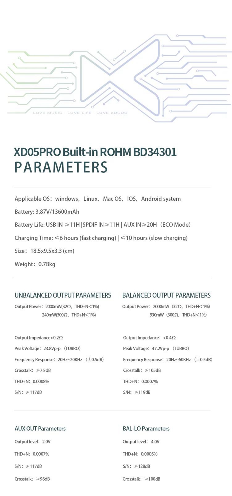 - It only includes the DAC module, the XD05 Pro Headphone Amplifier is not included.