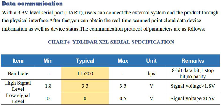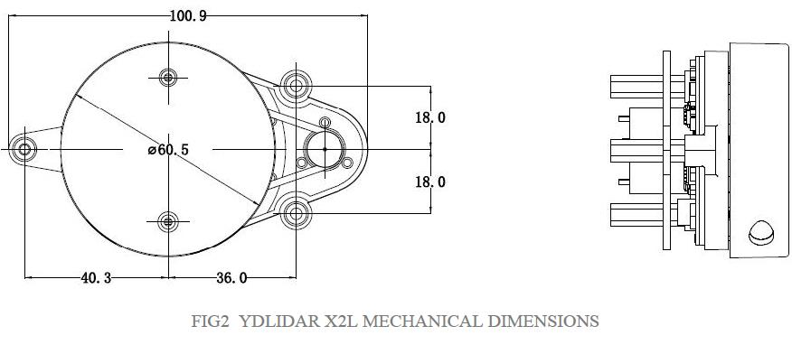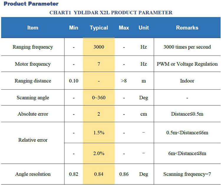 YDLIDAR X2L is a 360-degree two-dimensional rangefinder. Based on the principle of triangulation, it is equipped with related optics, electricity, and algorithm design to achieve high-frequency and high-precision distance measurement. The mechanical structure rotates 360 degrees to continuously output the angle information as well as the point cloud data of the scanning environment while ranging.