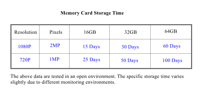 - Cloud storage recording time: 20pcs 8-second videos can be saved every day, 7 days as a cycle, automatic loop coverage.